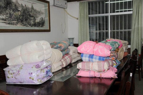 壮医药学院教师捐赠的棉被
