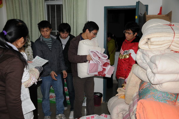 南宁近日一直持续低温天气,为帮助贫困学子度寒冬,壮医药学院林辰院长、卢汝梅副院长及壮医药学院老师于1月12日下午6点在壮医药楼为贫困学子举行了“出一份力,送爱心棉”的送温暖活动。
