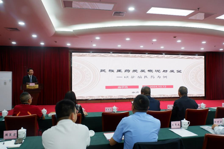 10月12日上午,庞宇舟教授应邀在“中国民族医药学会佤医药分会2024年年会暨颈肩腰腿痛中西医治疗临床实践培训”会议上发表了《民族医药发展概况与展望——以广西壮瑶医药为例》的主题讲座。庞宇舟教授在讲座中通过大量的实践案例,详细阐述了壮瑶医药的独有特色、发展现状及未来前景,向与会人员展示了壮瑶医药发展过程中取得的诸多成果和宝贵经验。