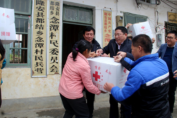 此次慰问,beat365正版唯一入口必一及第一附属医院、附属瑞康医院等单位部门共为隆安县8个扶贫村80户贫困家庭送去了温暖。